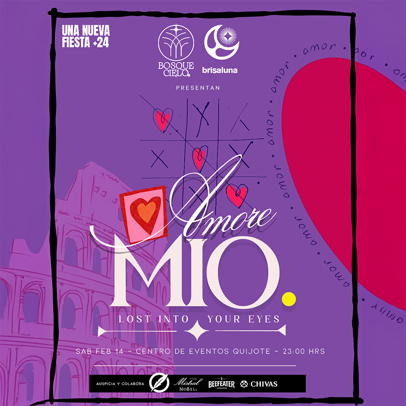 Amore Mio es una nueva fiesta de Bosquecielo y Brisaluna. Celebramos el amor, la vida, la amistad y que cumplimos un año juntos. Sè parte y ven a celebrar con nosotros el 14 de febrero.